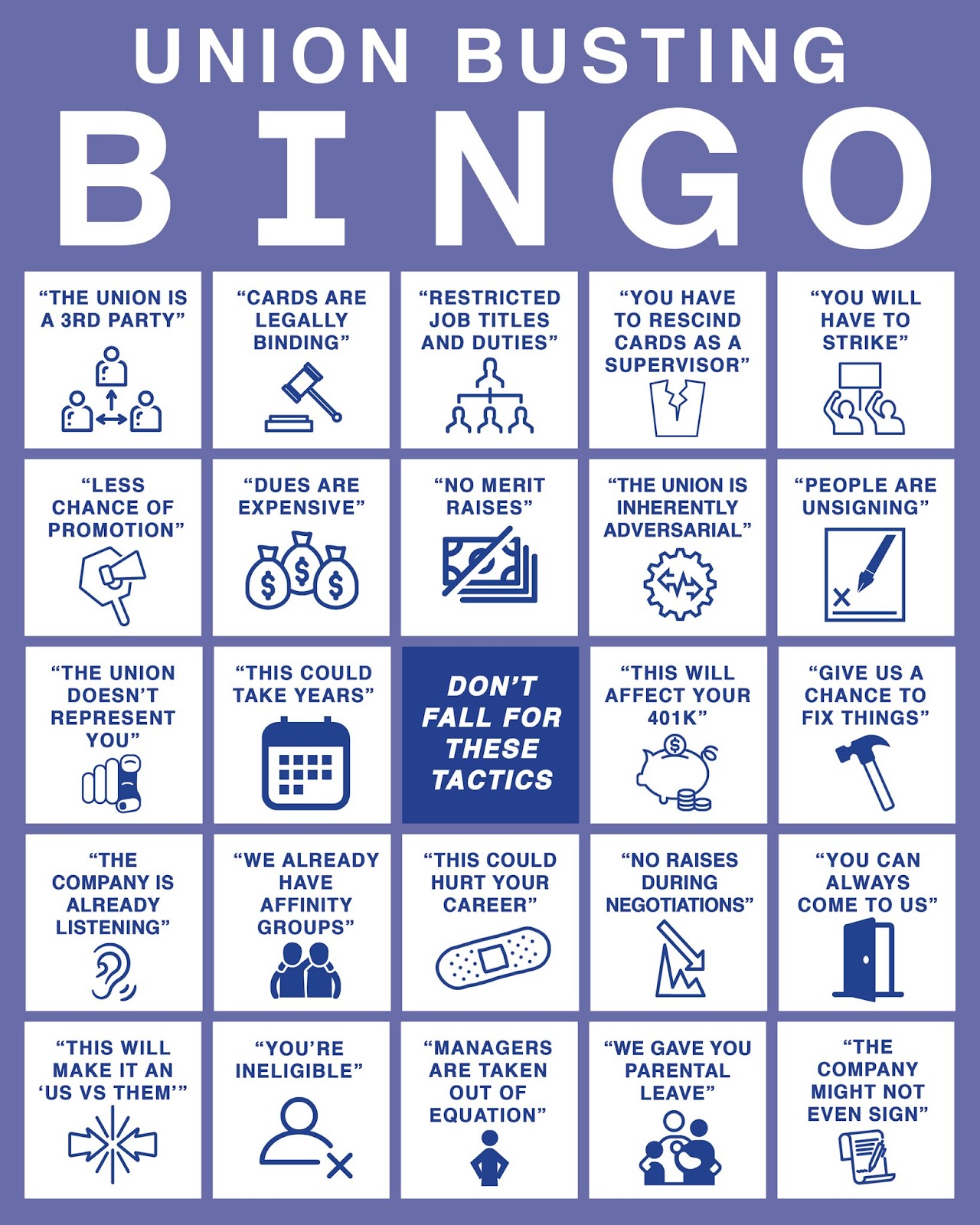 We’ll discuss the legal process of forming a union and help you strategize on how to get more of your co-workers involved.